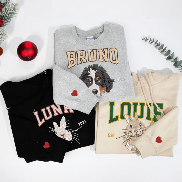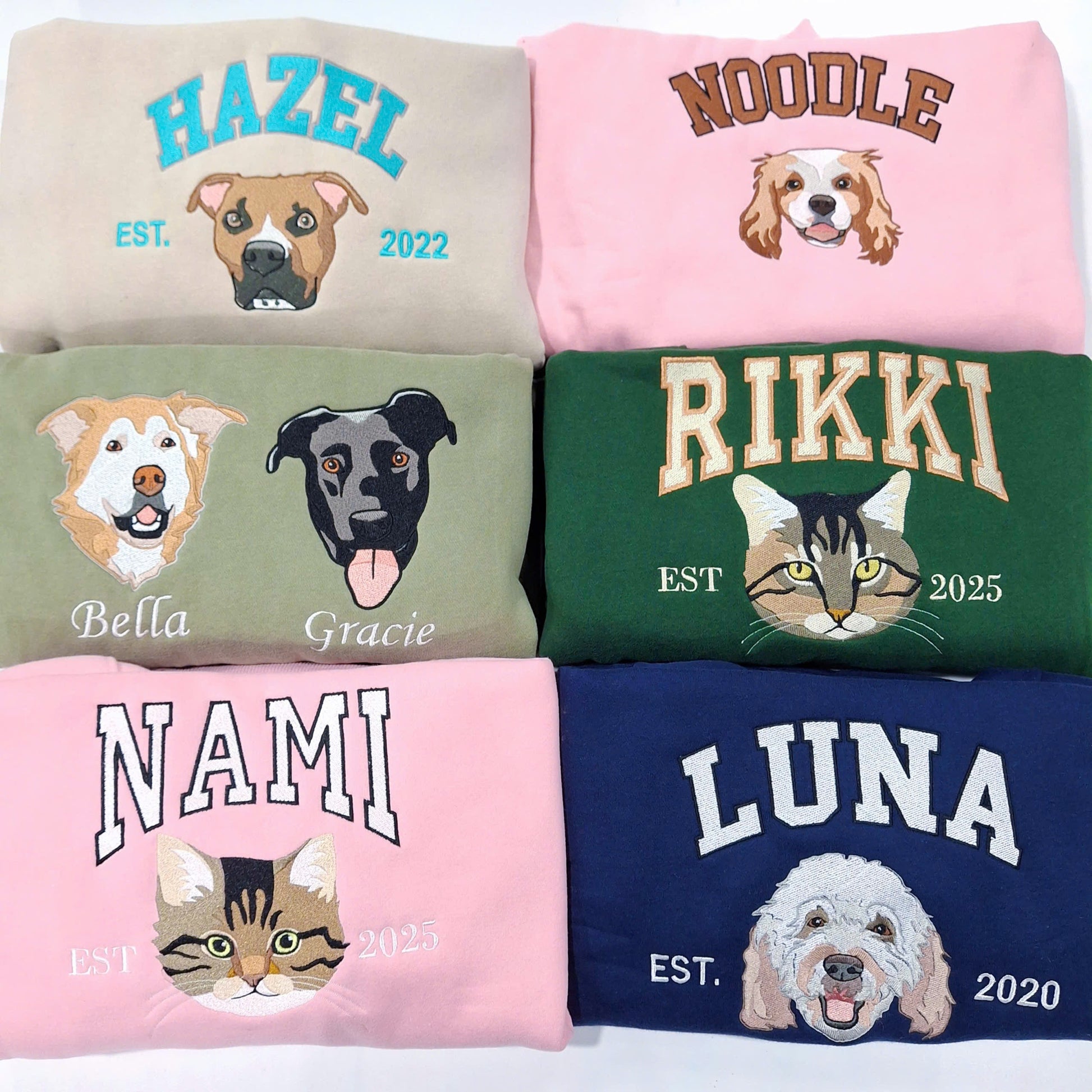 Personalized Embroidered Pet Face and Name Est Sweatshirt for Pet Lovers