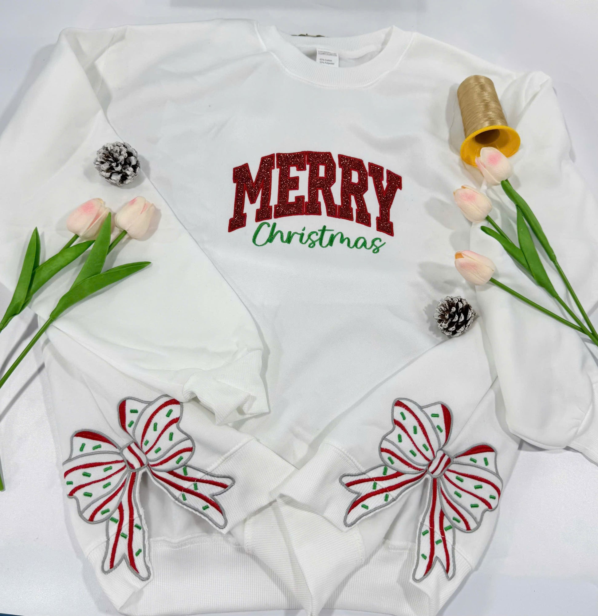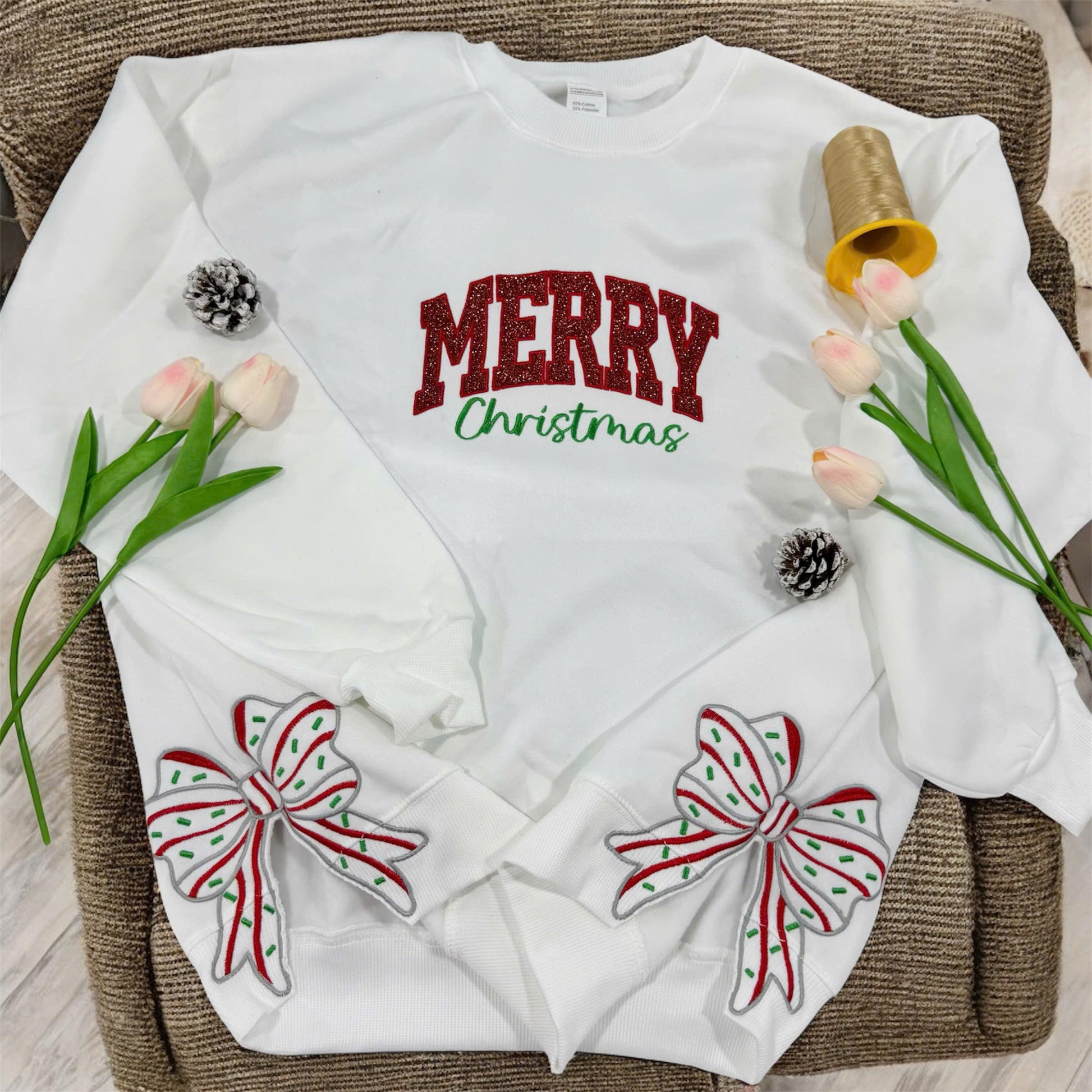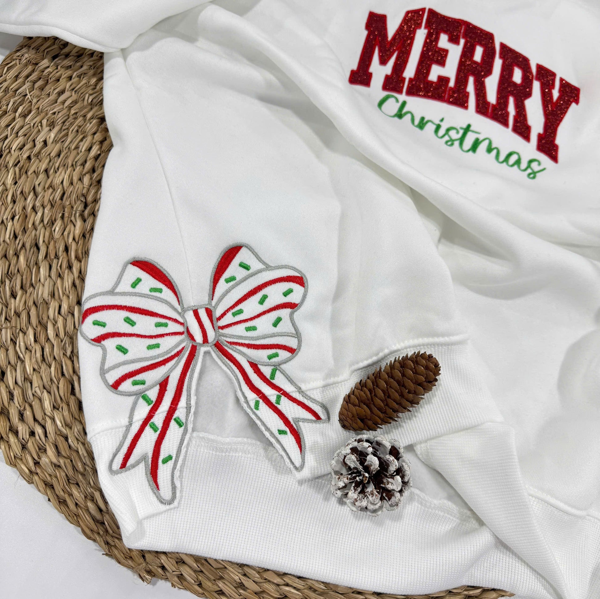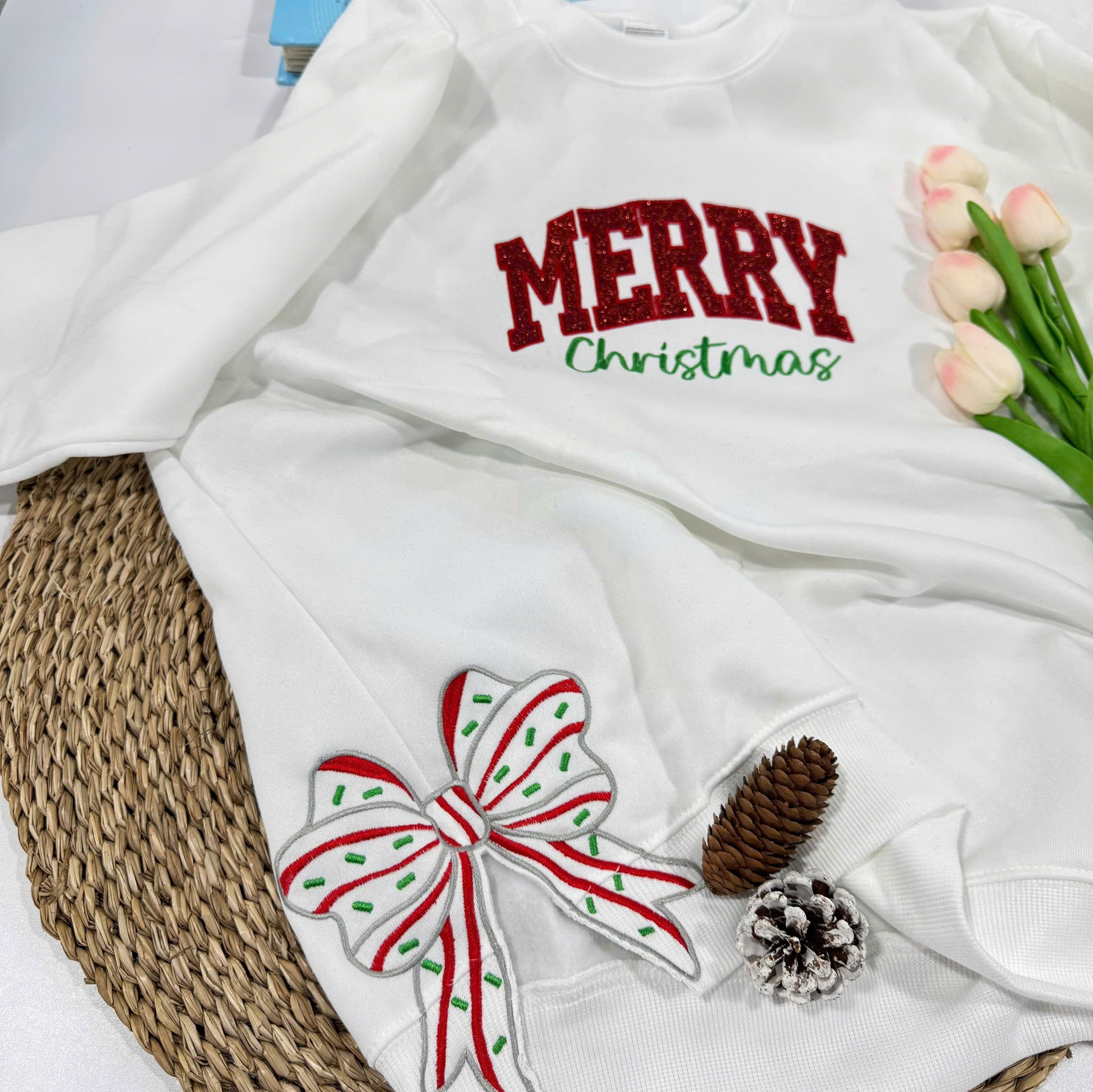 Merry Christmas Side Bow Embroidered Sweatshirt, christmas side bow,